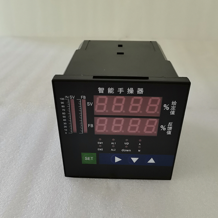 操作器是用来直接驱动(或电驱动的气动)执行机构的,一般可分为硬手操和软手操。硬手操是指按钮操作(输出强电)直接驱动执行机构的操作器,软手操是指按钮操作输出(电)信号还经过另外装置(一般是放大装置)才驱动执行机构。